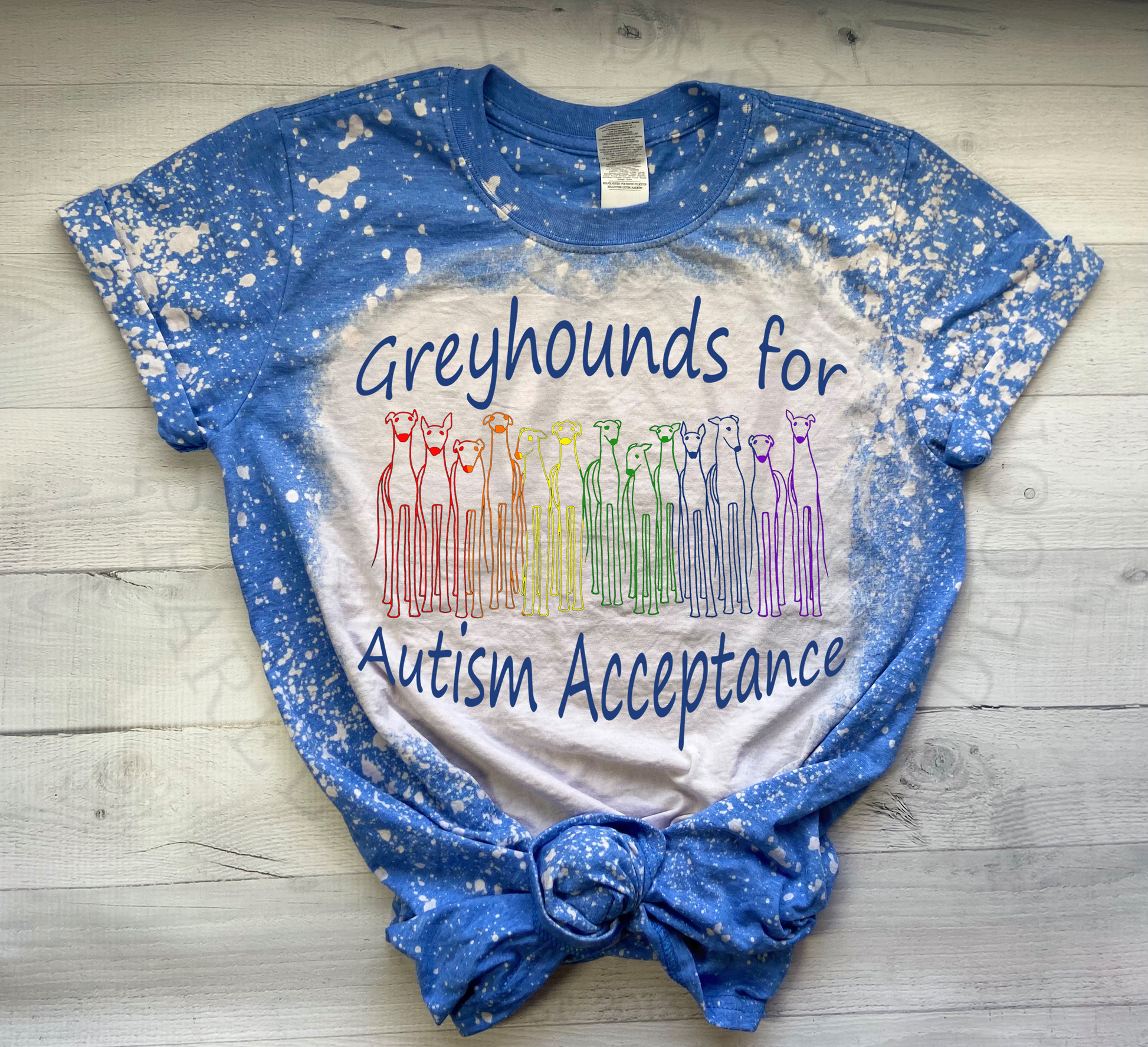 This fun bleached greyhound design on our hand bleached Bella & Canvas if a great way to show your support for your fellow greyhound classmates/students with ASD. Available in infant onesie, toddler tee, youth, and adult, everyone can show their support for Autism Acceptance.